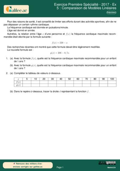 Exercice Première Spécialité - 2017 - Ex 5 : Comparaison de Modèles Linéaires