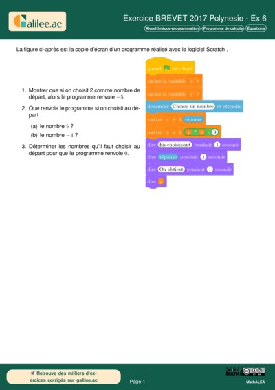 Chapitres: Algorithmique-programmation Programme de calculs Équations