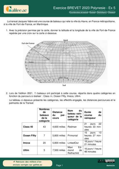 Chapitres: Coordonnées terrestres Durées Statistiques Vitesses