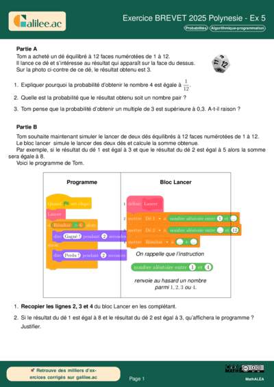Chapitres: Probabilités Algorithmique-programmation