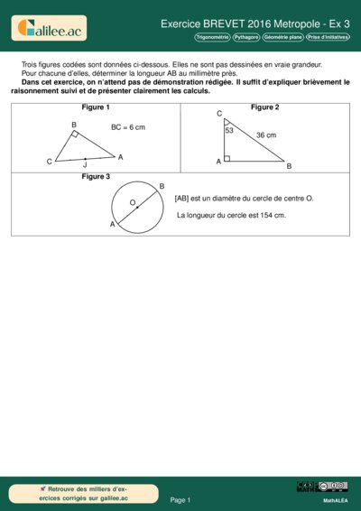 Chapitres: Trigonométrie Pythagore Géométrie plane Prise d'initiatives