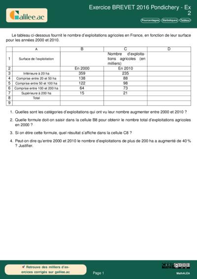 Chapitres: Pourcentages Statistiques Tableur