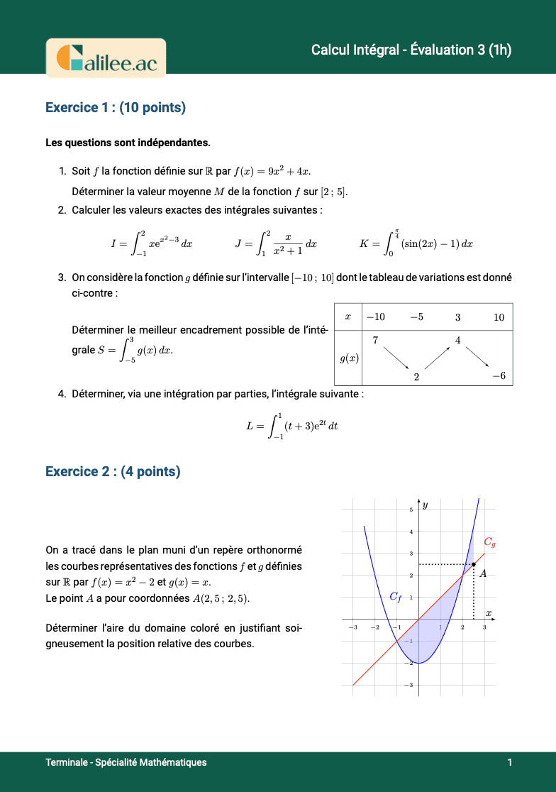 ⚡ Calcul intégral – Évaluation 3 (1h)