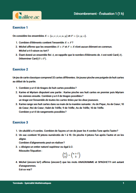 ⏱️ Durée : 1h • 4 exercices pour explorer le dénombrement et les principes de combinatoire.