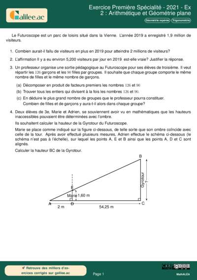 Cet exercice, bien qu'issu d'un sujet de brevet (DNB 2021), constitue un excellent test de diagnostic pour un élève de Première Spécialité. Il mobilise des compétences transversales essentielles : la gestion des ordres de grandeur, l'arithmétique élémentaire (décomposition en facteurs premiers) et la géométrie de configuration. En Première, la maîtrise de l'arithmétique est un prérequis pour aborder certains algorithmes en Python ou les suites numériques, tandis que la géométrie plane sert de fondation à la géométrie repérée et au produit scalaire.
