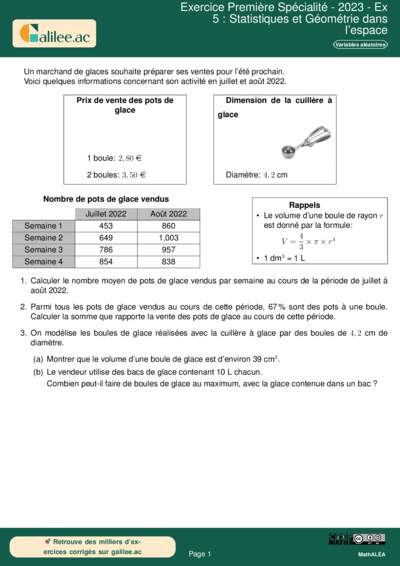 Exercice Première Spécialité - 2023 - Ex 5 : Statistiques et Géométrie dans l'espace