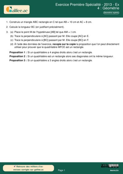 2. Nature du quadrilatère MFCE : Pour prouver que MFCE est un rectangle, listons les informations sur ses angles :