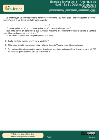 Exercice Brevet 2014 - Amérique du Nord - Ex 8 : Débit et Grandeurs Composées